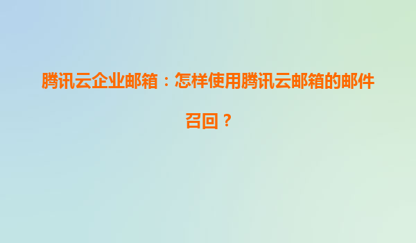 2025-08-09腾讯云企业邮箱:邮件召回功能使用指南 一、腾讯云企业邮箱的核心优势 腾讯云企业邮箱作为国内领先的企业级邮件服务,具备以下显著优势: 高可靠性-基于腾讯云全球基础设施,保障99.9%的服...