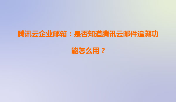 2025-08-08腾讯云企业邮箱邮件追溯功能详解 一、邮件追溯功能的核心价值 腾讯云企业邮箱的邮件追溯功能是企业级邮件管理的重要工具,它允许管理员通过时间、发件人、收件人等关键字段快速定位历史邮件,有效解决邮件...