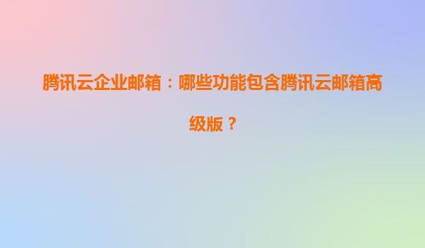 2025-08-08腾讯云企业邮箱:哪些设备支持腾讯云邮箱实时同步? 一、腾讯云企业邮箱的核心优势 腾讯云企业邮箱作为一款高效的企业级通信工具,依托腾讯强大的技术实力和云计算资源,具备以下核心优势: ...
