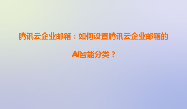 2025-08-08腾讯云企业邮箱:如何设置AI智能分类及腾讯云生态优势解析 一、腾讯云企业邮箱AI智能分类功能介绍 腾讯云企业邮箱的AI智能分类功能基于腾讯自研AI算法,可自动识别邮件内容并智能归类至预设标签(如"重要通...