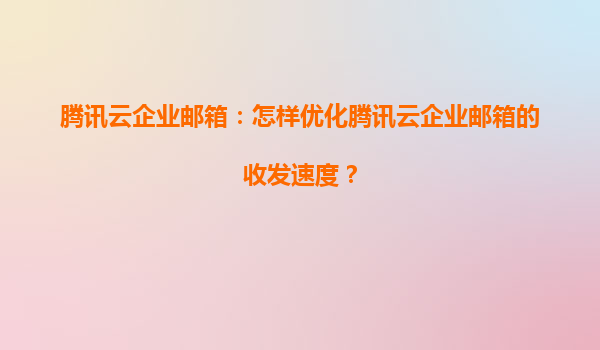 2025-08-08腾讯云企业邮箱:怎样优化腾讯云企业邮箱的收发速度? 一、引言 腾讯云企业邮箱作为一款高效、安全的企业级邮件服务,广泛应用于各类企业。然而,在实际使用过程中,部分用户可能会...