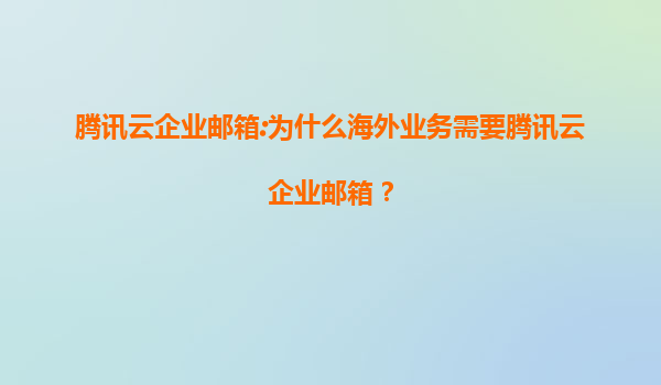 2025-08-06腾讯云企业邮箱:为什么海外业务需要腾讯云企业邮箱? 引言 随着全球化进程的加速,越来越多的企业开始拓展海外市场。在海外业务中,高效、稳定的企业邮箱系统是沟通协作的核心工具。腾...