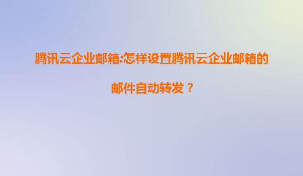 2025-08-05腾讯云企业邮箱:如何设置邮件自动转发及产品优势解析 一、腾讯云企业邮箱简介 腾讯云企业邮箱是基于腾讯多年邮件系统运营经验推出的专业企业级邮箱服务,提供高可用、高安全的邮件通信解决方案。其丰富的...