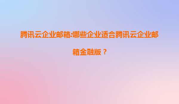 2025-08-05腾讯云企业邮箱金融版:哪些企业适合选择? 一、腾讯云企业邮箱金融版的定位 腾讯云企业邮箱金融版是专为金融行业及对数据安全、合规性要求高的企业设计的专业...