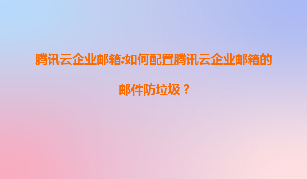2025-08-05腾讯云企业邮箱:如何配置邮件防垃圾功能 一、腾讯云企业邮箱的优势 腾讯云企业邮箱作为国内领先的企业级邮件服务,凭借腾讯强大的技术实力和丰富的安全经验,为企业用户提供了高效、稳定、安全的邮件服务...