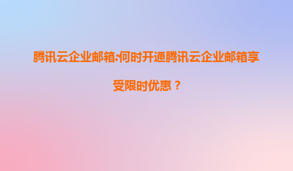 2025-08-04腾讯云企业邮箱限时优惠活动解读 腾讯云企业邮箱作为国内领先的企业级邮件服务,近期推出限时优惠活动,新用户注册可享受专属折扣。本文将详细介绍活动时间、腾讯云企业邮箱的核心优势及适用场景,帮助企业高效...