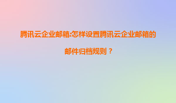 2025-08-03腾讯云企业邮箱:邮件归档规则设置指南 一、腾讯云企业邮箱的核心优势 腾讯云企业邮箱作为国内领先的企业级邮件服务,凭借以下优势成为众多企业的首选: 高可靠性:基于腾讯云全球基础设施,...