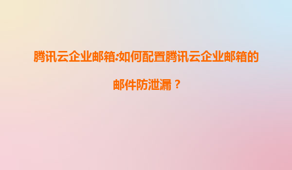 2025-08-03腾讯云企业邮箱邮件防泄漏配置指南 一、腾讯云企业邮箱的安全优势 腾讯云企业邮箱基于腾讯二十余年安全技术积累,提供企业级邮件安全保障。其防泄漏功能通过多重加密传输、智能内容过滤、权限精细化管控等...