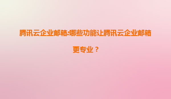2025-08-03腾讯云企业邮箱:如何通过腾讯云企业邮箱实现邮件监控? 一、腾讯云企业邮箱的核心优势 腾讯云企业邮箱是基于腾讯多年邮件服务经验打造的企业级邮箱解决方案,具备以下核心优势: 高安全性:...