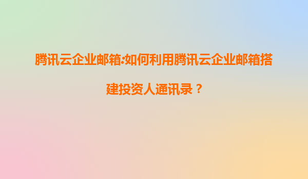 2025-08-03腾讯云企业邮箱:如何利用腾讯云企业邮箱搭建投资人通讯录? 一、腾讯云企业邮箱的核心优势 腾讯云企业邮箱作为一款专业的企业级邮件服务,具备以下核心优势: ...