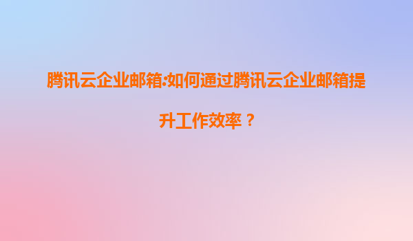 2025-07-30腾讯云企业邮箱:如何通过腾讯云企业邮箱提升工作效率? 一、腾讯云企业邮箱的核心优势 腾讯云企业邮箱是基于云计算技术打造的专业级企业通信解决方案,融合了腾讯在即时通讯、数据安全及云端服务的多年积累,...