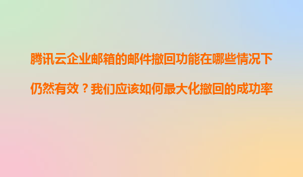 2025-11-11腾讯云企业邮箱邮件撤回功能的适用场景及成功率优化 邮件撤回功能的核心价值 腾讯云企业邮箱提供的邮件撤回功能是企业高效沟通的重要保障。当用户误发敏感信息、错发附件或内容需修正时,撤回功能可有效降...