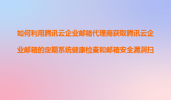 2025-11-11如何通过腾讯云企业邮箱代理商获取定期系统健康检查与安全漏洞扫描服务 一、腾讯云企业邮箱的核心价值 腾讯云企业邮箱作为企业级通信解决方案,提供高稳定性邮件服务、专业反垃圾防护以及多重安全加密机制...