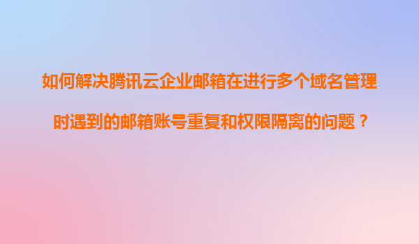 如何解决腾讯云企业邮箱多域名管理中的邮箱账号重复与权限隔离问题 一、问题背景与需求分析 随着企业业务扩张,多域名邮箱管理成为普遍需求。腾讯云企业邮箱在支持多个域名管理时,可能...