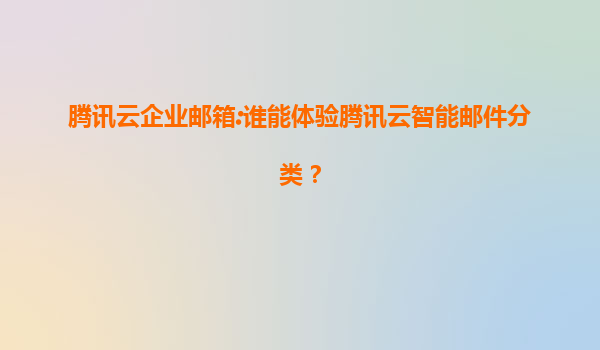 2025-07-20腾讯云企业邮箱:谁能体验腾讯云智能邮件分类? 在数字化时代,企业邮箱不仅是沟通的工具,更是高效协作的核心平台。腾讯云企业邮箱凭借其智能化、安全稳定的特性,成为众多企业的首选。其中,智能邮件分类功能...