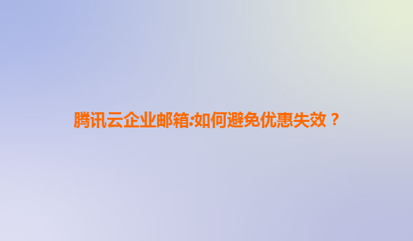 2025-07-15腾讯云企业邮箱:如何避免优惠失效? 一、了解腾讯云企业邮箱的核心优势 腾讯云企业邮箱是基于腾讯多年技术积累打造的专业邮件服务,提供高稳定性、强安全保障和智能化管理功能。其核心优...