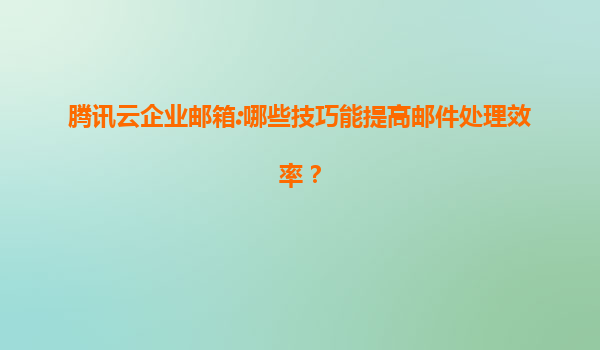 2025-07-12腾讯云企业邮箱:提升邮件处理效率的实用技巧 引言 在快节奏的现代商业环境中,高效的邮件处理能力是企业保持竞争力的重要因素之一。腾讯云企业邮箱作为一款功能强大的企业级邮件解决方案,不...