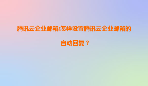 2025-07-11腾讯云企业邮箱:怎样设置腾讯云企业邮箱的自动回复? 腾讯云企业邮箱作为一款高效、安全的云端邮件服务,凭借其丰富的功能和易用性,受到了众多企业用户的青睐。其中,自动回复功能在日常办公中尤为...