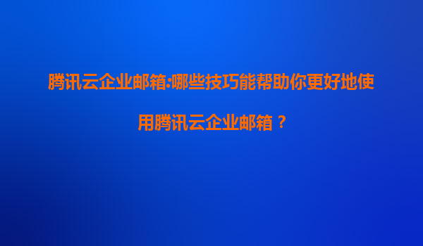 2025-07-09腾讯云企业邮箱:哪些技巧能帮助你更好地使用腾讯云企业邮箱? 随着企业数字化转型的加速,高效、安全的电子邮件服务成为企业日常运营的重要工具。腾讯云企业邮箱作为腾讯云旗下的一款专业邮箱服务,凭借其强大的...