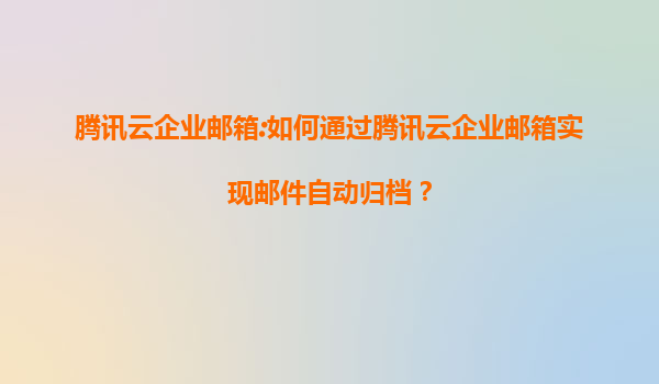 腾讯云企业邮箱:如何通过腾讯云企业邮箱实现邮件自动归档? 一、邮件自动归档的重要性 随着企业信息化程度的提高,电子邮件已成为企业内部沟通和业务往来的重要工具。然而,大量的邮件数据不仅占用存储空间,...