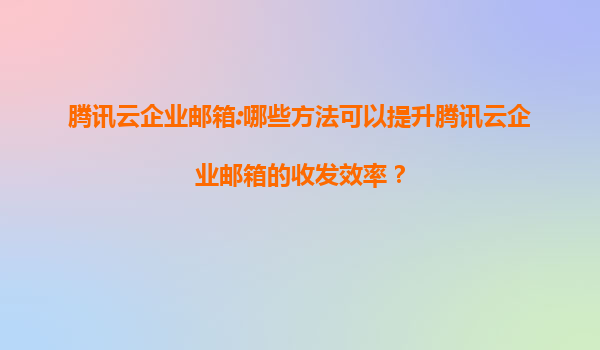 2025-07-09腾讯云企业邮箱:提升收发效率的五大方法 引言 腾讯云企业邮箱作为一款高效稳定的企业级邮件服务,广泛应用于各类企业和组织中。然而,在实际使用过程中,用户可能会遇到邮件收发效率不高的问题。本文将结...