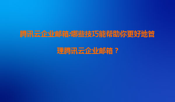 2025-07-08腾讯云企业邮箱:优化设置提升使用体验的实用指南 一、腾讯云企业邮箱的核心优势 腾讯云企业邮箱作为基于云计算的企业级通信解决方案,凭借以下优势成为众多企业的首选: 高可靠性保障-...