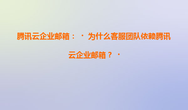2025-07-06腾讯云企业邮箱:为什么客服团队依赖腾讯云企业邮箱? 在当今数字化时代,企业邮箱不仅是沟通的工具,更是企业形象、信息安全和工作效率的重要保障。腾讯云企业邮箱凭借其强大的功能、稳定的性能和卓越的安全性...