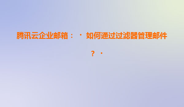 2025-07-06腾讯云企业邮箱:高效邮件管理利器 在当今快节奏的商业环境中,高效管理邮件是企业提升沟通效率的关键。腾讯云企业邮箱凭借其强大的过滤器功能,为用户提供了智能化、自动化的邮件管理解决方案,帮助企业轻松应对海...