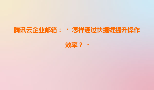 腾讯云企业邮箱:快捷键操作提升办公效率指南 一、腾讯云企业邮箱的核心优势 作为国内领先的企业级邮箱服务,腾讯云企业邮箱依托腾讯二十余年通信技术积累,提供99.99%高可用性服务,支持百万级邮件瞬时投递。...