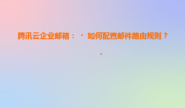 2025-07-06腾讯云企业邮箱:如何配置邮件路由规则? 一、腾讯云企业邮箱的优势 腾讯云企业邮箱作为一款专业的企业级邮件服务,具有以下显著优势: 高安全性:采用多重加密技术,支持SPF、DKIM、DMARC等...