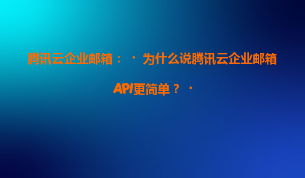 2025-07-06腾讯云企业邮箱:为什么说腾讯云企业邮箱API更简单? 一、腾讯云企业邮箱API的简单性解析 腾讯云企业邮箱API的设计理念以“开发者友好”为核心,通过模块化接口、标准化协议和丰富的文档支持,显著降低了企...