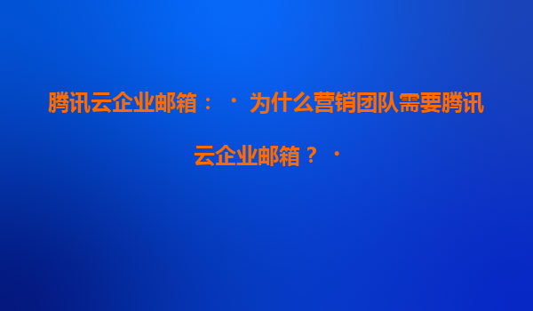 2025-07-06腾讯云企业邮箱:为什么营销团队需要腾讯云企业邮箱? 一、营销团队面临的沟通与协作挑战 在数字化营销时代,营销团队需要高效处理大量客户沟通、跨部门协作及数据管理任务。传统邮箱系统常面临以下痛点: ...