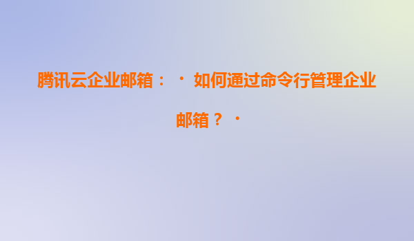 2025-07-05腾讯云企业邮箱:如何通过命令行管理企业邮箱? 引言 随着企业信息化程度的不断提高,企业邮箱作为日常沟通和协作的重要工具,其管理效率直接影响企业的运营效率。腾讯云企业邮箱不仅提供了丰富的Web管理界...