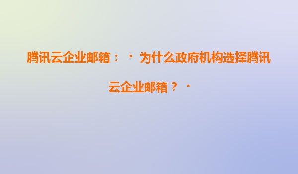 2025-07-05腾讯云企业邮箱:为什么政府机构选择腾讯云企业邮箱? 一、政府机构对邮箱系统的核心需求 政府机构作为国家重要职能部门,对信息化工具的安全性、稳定性和合规性有着极高要求。邮箱系统作为日常办公的核心...