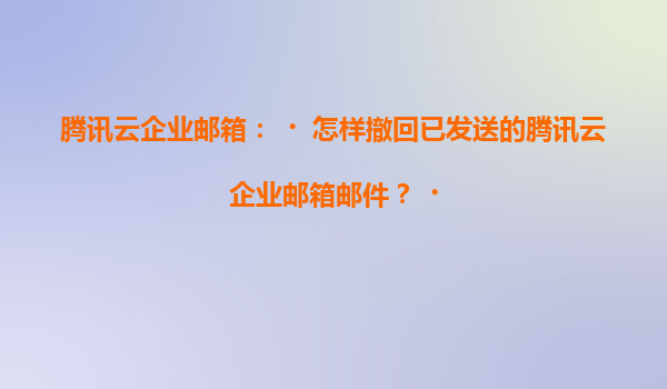 2025-07-05腾讯云企业邮箱:如何撤回已发送的邮件? 一、腾讯云企业邮箱的邮件撤回功能 在日常工作中,邮件发送错误或内容需要修改的情况时有发生。腾讯云企业邮箱提供了邮件撤回功能,帮助用户在邮件发送后快速...