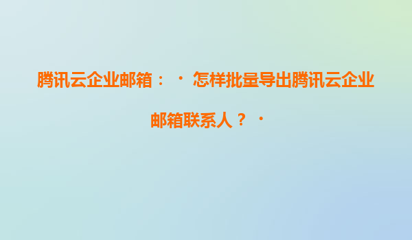 2025-07-05腾讯云企业邮箱:如何批量导出联系人及产品优势详解 一、腾讯云企业邮箱批量导出联系人操作指南 在企业日常管理中,批量导出联系人是一项高频需求。腾讯云企业邮箱提供了简单高效的导出方案: 步...