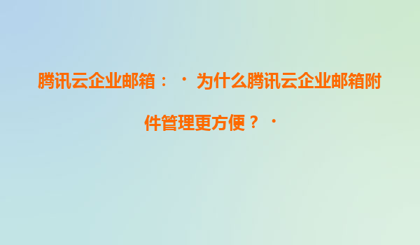 2025-07-05腾讯云企业邮箱:为什么腾讯云企业邮箱附件管理更方便? 一、腾讯云企业邮箱附件管理的核心优势 腾讯云企业邮箱作为国内领先的企业级邮箱服务,其附件管理功能在设计上充分考虑了企业用户的实际需求,通过...