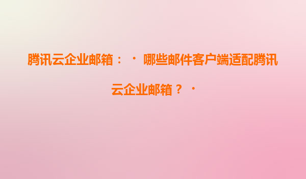 2025-07-05腾讯云企业邮箱适配的邮件客户端及腾讯云代理商优势解析 一、腾讯云企业邮箱简介 腾讯云企业邮箱是基于腾讯多年邮件系统技术积累打造的云端企业级邮箱服务,提...