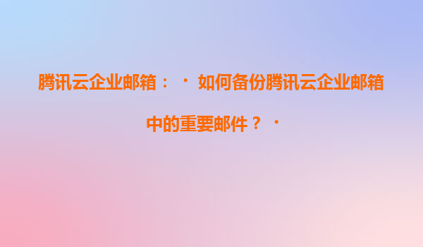 2025-07-05腾讯云企业邮箱:如何备份重要邮件及平台优势解析 一、腾讯云企业邮箱备份邮件的重要性 在数字化办公时代,企业邮件承载着大量关键业务信息、合同文档和客户沟通记录。一旦因误删、系统故障或安全事件导致...