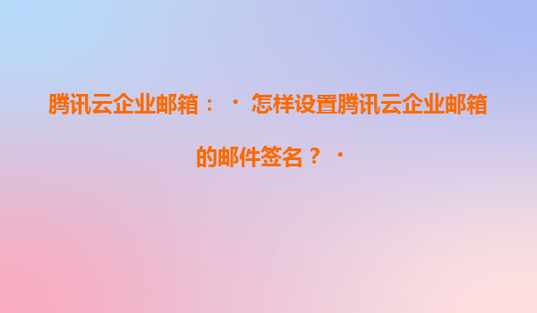 2025-07-05腾讯云企业邮箱邮件签名设置指南 腾讯云企业邮箱的核心优势 腾讯云企业邮箱作为一款专业的企业级邮件服务,依托腾讯强大的技术实力和丰富的运营经验,为用户提供了稳定、安全、高效的邮件服务。其优势主要体现在以...