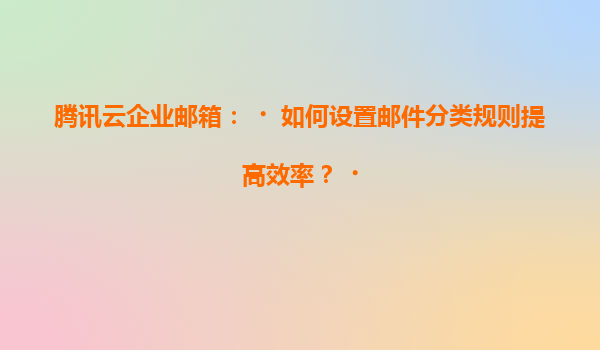 腾讯云企业邮箱:如何设置邮件分类规则提高效率 引言:企业邮箱管理的重要性 在现代企业中,高效的邮件管理是提升工作效率的关键。腾讯云企业邮箱作为一款专业的企业级邮箱服务,不仅提供了稳定的邮件收发...