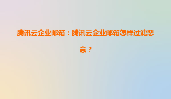 2025-07-03腾讯云企业邮箱:如何通过客户端设置规则? 一、腾讯云企业邮箱的核心优势 腾讯云企业邮箱作为国内领先的企业级邮件服务解决方案,依托腾讯的技术积累和生态系统,具备以下核心优势: ...