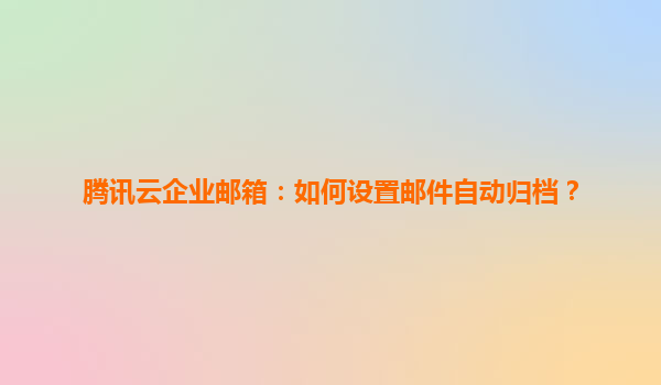 2025-07-02腾讯云企业邮箱:如何设置邮件自动归档? 一、邮件自动归档的重要性 在企业日常运营中,邮件是重要的沟通和文件传输工具。随着邮件数量的增加,管理和检索历史邮件变得...