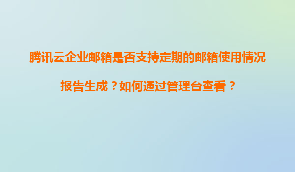2025-11-09腾讯云企业邮箱:如何定期生成及查看邮箱使用情况报告 一、腾讯云企业邮箱的定期报告功能概述 腾讯云企业邮箱作为一款专业的企业级邮件服务解决方案,提供了丰富的管理功能,其中就包括定期生成邮箱...