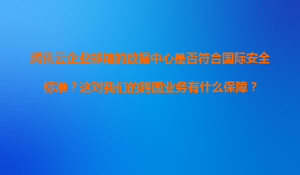 2025-11-09腾讯云企业邮箱的数据中心安全性与国际业务保障分析 一、腾讯云企业邮箱数据中心的核心安全标准 腾讯云企业邮箱的数据中心建设严格遵循国际主流安全认证体系: ISO27001认证...