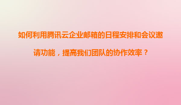 腾讯云企业邮箱的日程管理与会议功能如何赋能团队协作 在数字化转型加速的今天,高效协作工具已成为企业发展的刚需。腾讯云企业邮箱凭借其深度融合的日程安排与会议邀请功能,为团队提供了丝滑流畅的协同体验。本文...