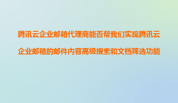 2025-11-09腾讯云企业邮箱代理商能帮您实现高级搜索与文档筛选功能吗? 一、腾讯云企业邮箱的核心优势 腾讯云企业邮箱作为国内领先的企业级邮件服务解决方案,具备以下核心功能优势: 海量存储空间-单...