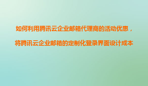 2025-11-09如何利用腾讯云企业邮箱代理商的活动优惠,将定制化登录界面设计成本降到最低? 在数字化转型的浪潮中,企业邮箱不仅是沟通工具,更是企业品牌形象的展示窗口。腾讯云企业邮箱凭借其稳定性和丰富的功能,成为众多企...