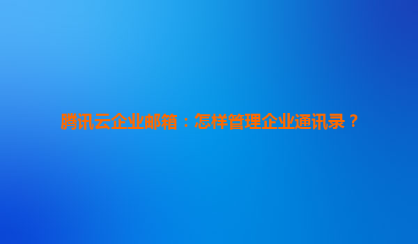 腾讯云企业邮箱:高效管理企业通讯录的全面指南 一、腾讯云企业邮箱通讯录管理的核心价值 腾讯云企业邮箱作为国内领先的企业级邮件服务解决方案,其通讯录管理功能专为提升组织协作效率设计。通过云端集中化管...