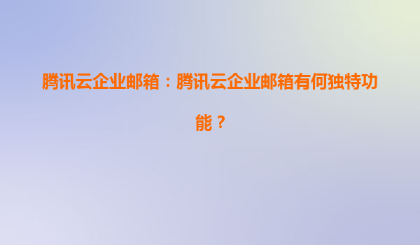 2025-06-30腾讯云企业邮箱:腾讯云企业邮箱有何独特功能? 一、腾讯云企业邮箱的核心优势 腾讯云企业邮箱依托腾讯集团在云计算和通信领域的技术积累,融合了企业级安全防护与智能化办公能力,为企业提供高效稳定的邮件服...